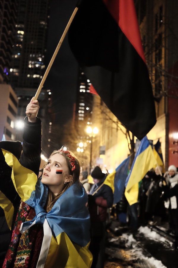 Since Putin’s invasion began, Ukrainian Chicagoan have come out in solidarity and strength, pleading for assistance from the United States, Europe, and NATO, praying for deliverance. On the evening of 25 February 2022, the first of what will become a series of demonstrations occurred at Millennium Park. Once again, I find myself picking up my lenses and documenting the ongoings here in Chicago.
