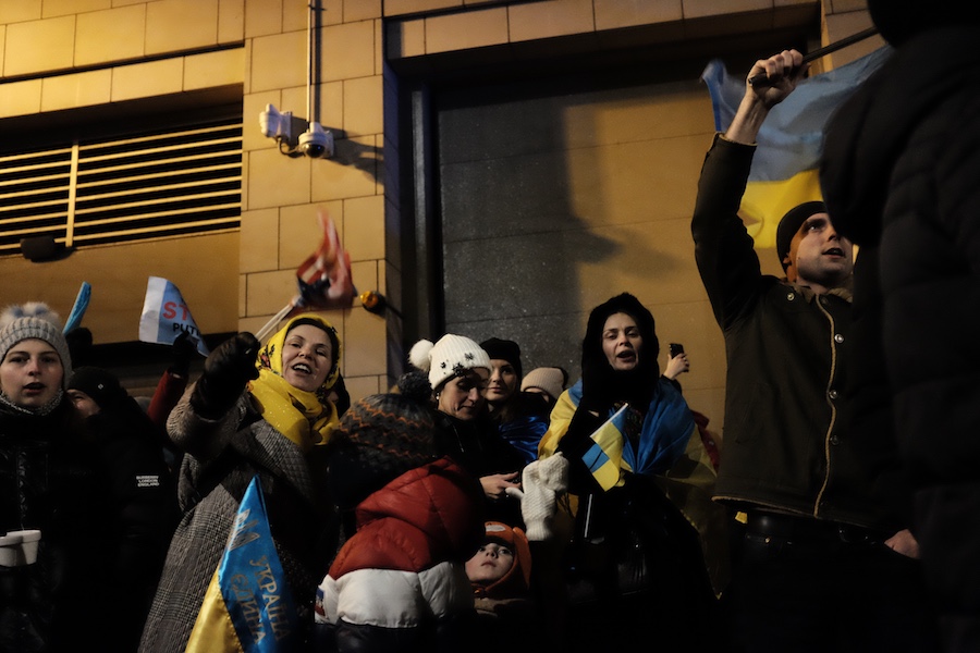 After a while, a magnificent banner of gold and blue was unfurled. As Ukrainians flank and surround the massive flag, the crowd sang the national anthem of Ukraine, proudly as to mask any sense of despair and worry they may be carrying. A new chant resonated through the crowd: